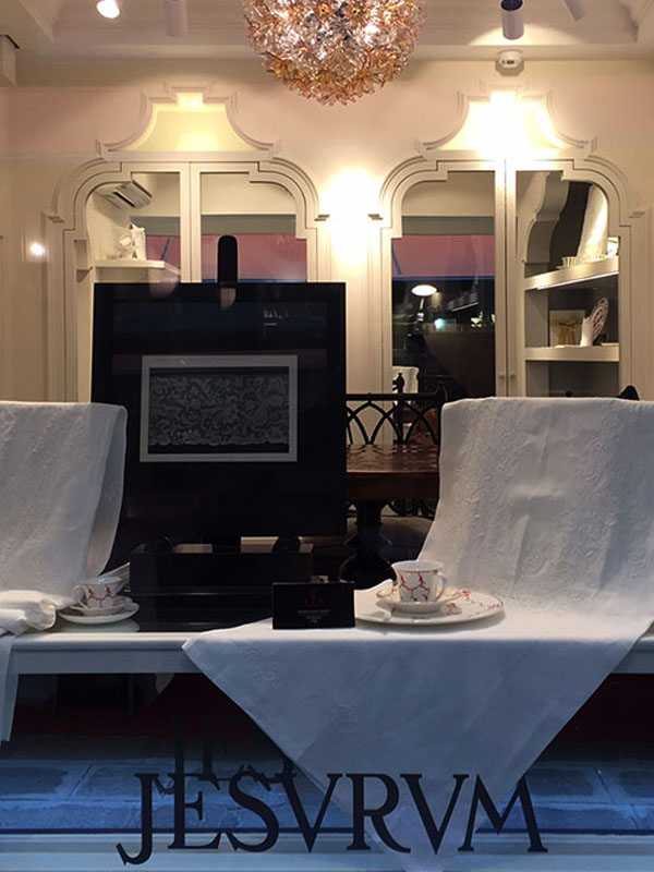 Sabato 8 Aprile 2017 in San Marco Calle Veste 2024 a Venezia, è stato inaugurato il nuovo negozio Jesurum, da quasi 150 anni icona raffinata della biancheria per la casa, yacht, jet privati e progetti speciali di personalizzazione rivolta ad architetti, stilisti e interior designers. Fanno mostra di sè le porcellane decorate “Tradition” della Manifattura Geminiano Cozzi Venezia 1765, tratte dall’archivio storico della Manifattura, ricco di decorazioni policrome in cui delicate figure si alternano a motivi floreali, leggiadre farfalle rincorrono tipici motivi a “bersò” nei toni del rosso ferro, verde smeraldo, blu cobalto e porpora talvolta illuminati da fregi in oro zecchino.