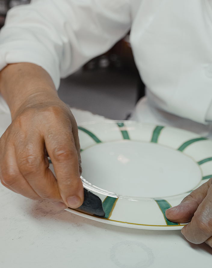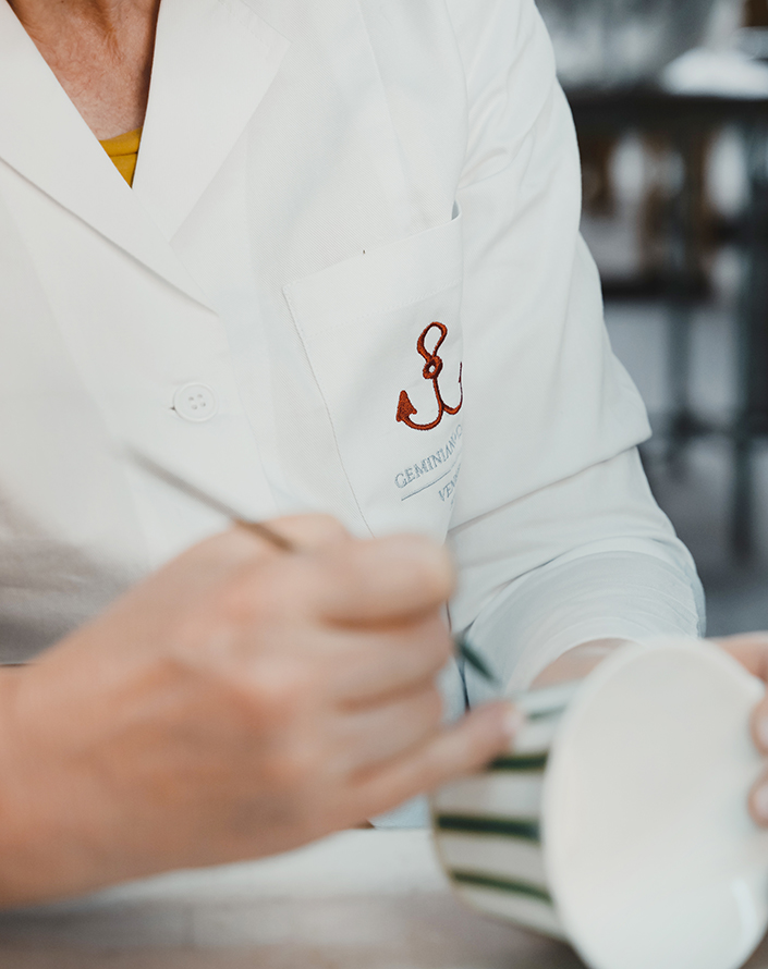 Fin dall’antichità, l’uomo ha sempre cercato di rendere piacevole l’aspetto di ogni cosa che lo circondava. Una ricerca che ha coinvolto sia le grandi opere d’arte che gli oggetti di uso quotidiano. Il nostro viaggio di riscoperta della manifattura veneziana Geminiano Cozzi è un tributo a questa antica tradizione, ed è iniziato con il recupero delle antiche decorazioni, conservate gelosamente nei suoi archivi. Questi ornamenti, riprodotti e applicati rigorosamente a mano, sono affidati ai nostri maestri decoratori, tutti artigiani italiani attentamente selezionati per i loro spirito creativo e la loro maestria esecutiva.
