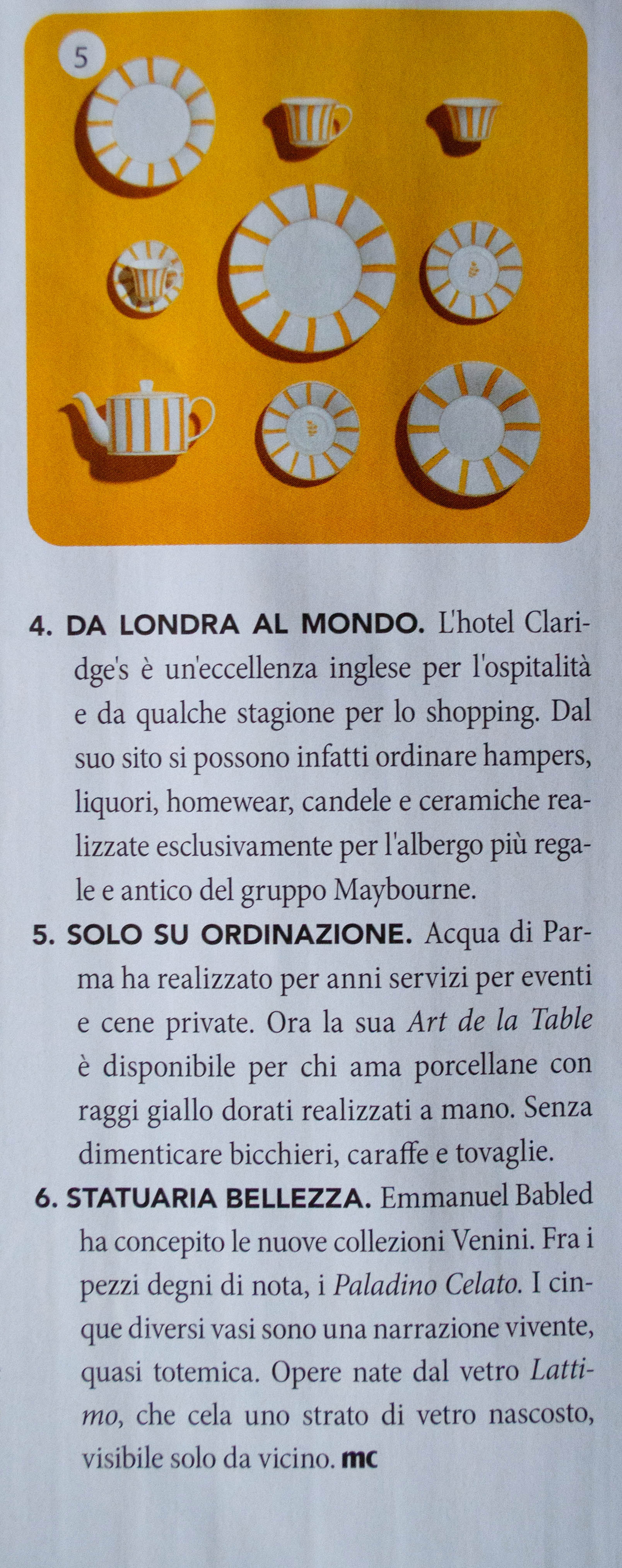 Art de la Table! Siamo su Marie Claire in cui fa bella mostra di sé il servizio realizzato per Acqua di Parma, a Striche Gialle in esclusiva.