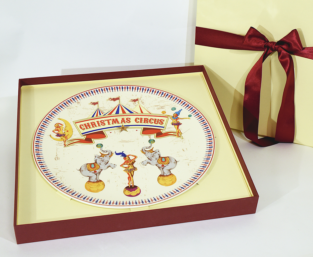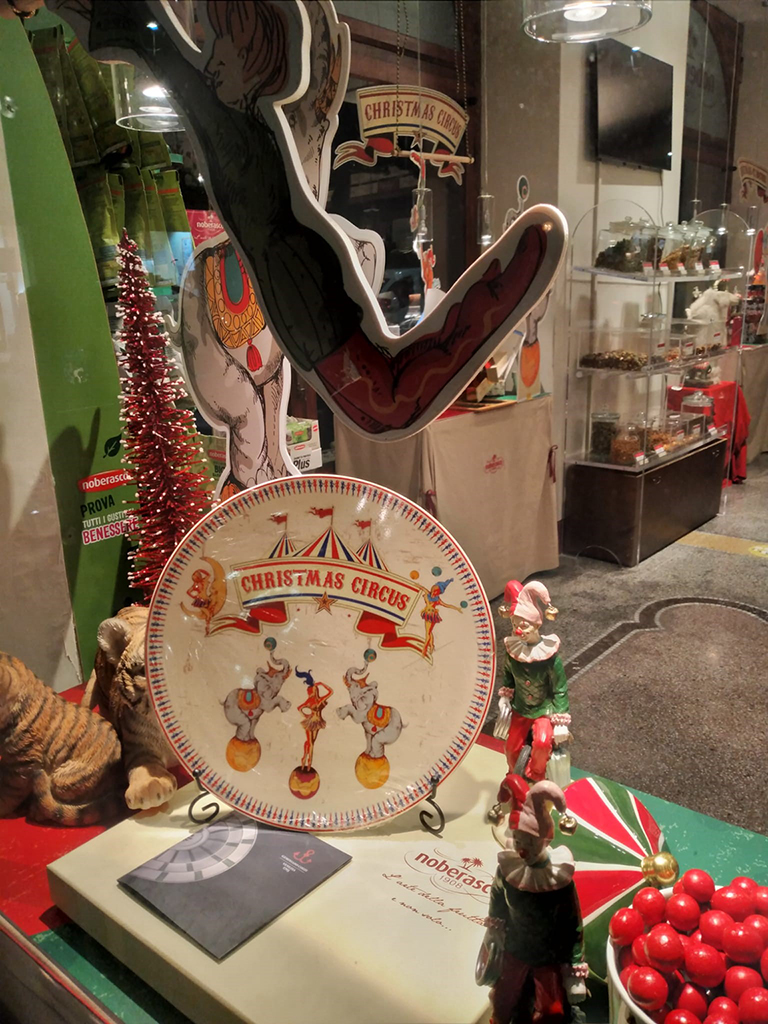 Noberasco ha voluto celebrare questo Natale ideando un esclusivo piatto in fine bone porcelain, realizzato dalla Manifattura Geminiano Cozzi Venezia 1765, che sarà venduto nei punti vendita Noberasco monomarca. Sui 100 esemplari realizzati dalla manifattura, decori che richiamano le magiche atmosfere di un circo della Belle Epoque, colorati, evocativi, divertenti, in cui la figurazione circense accoglie un ospite speciale: la Ballerina Noberasco, iconica e immortale dei tempi e valori che furono. Un oggetto unico e irripetibile, che rallegrerà ogni occasione.