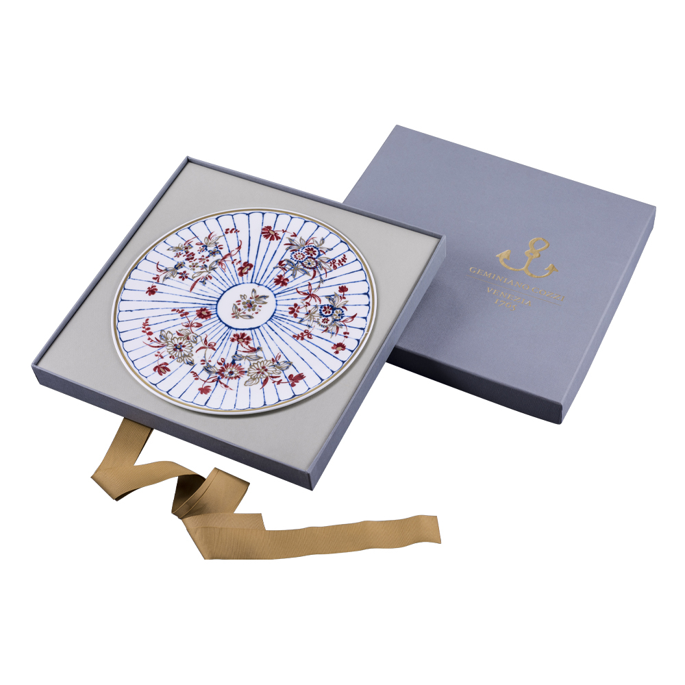Il segnaposto della collezione A Striche e Oro, proposto in elegante giftbox, rivela tutta la raffinatezza della tradizione veneziana. Realizzato in bone china finemente decorata da strisce colorate e oro zecchino 24K, rappresenta un dono esclusivo, ideale per occasioni di prestigio. L'autenticità Geminiano Cozzi si esprime nella confezione firmata, simbolo di stile senza tempo per chi desidera arricchire la propria tavola con eccellenza artigianale veneziana.
