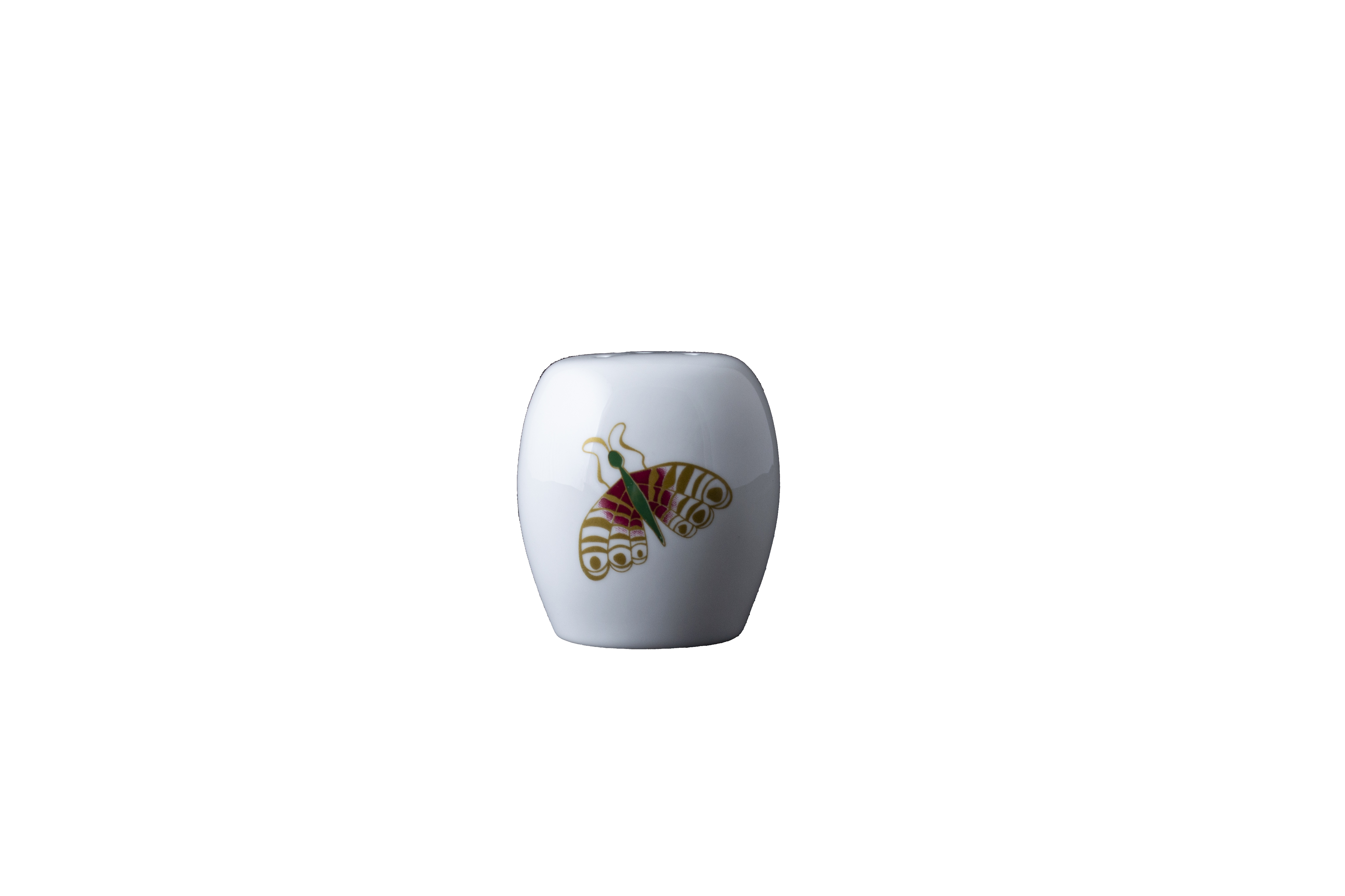 Il porta pepe cm 6,5 Carte da Zogo si distingue per la sua eleganza discreta, espressa attraverso un solo raffinato elemento decorativo: una farfalla colorata che si posa delicatamente sulla superficie bianca della bone china. Nessun altro ornamento interrompe la purezza del materiale, lasciando che la farfalla racconti, con leggerezza e poesia, la storia di un oggetto che porta sulla tavola un tocco di spensierata originalità e uno spirito tipicamente veneziano.