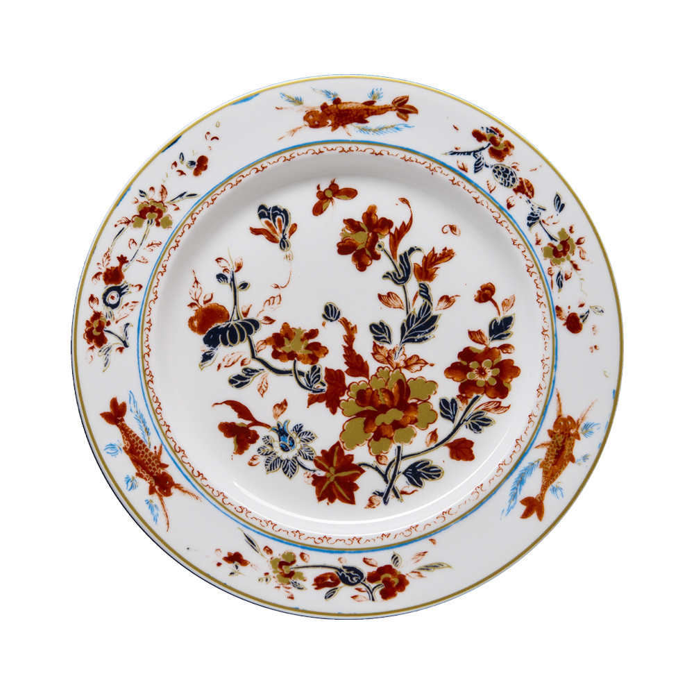 Questo piatto dessert in pregiata bone china cattura l'eredità storica della Venezia del Settecento. Il decoro, impreziosito da motivi floreali e dalle iconiche carpe Koi simbolo di buona fortuna, rappresenta l'incontro perfetto tra mondi lontani nella collezione Chinesi Fiori Finiti. Ideale per dolci e piccole degustazioni, arricchisce ogni servizio con brillantezza ed eleganza orientale.