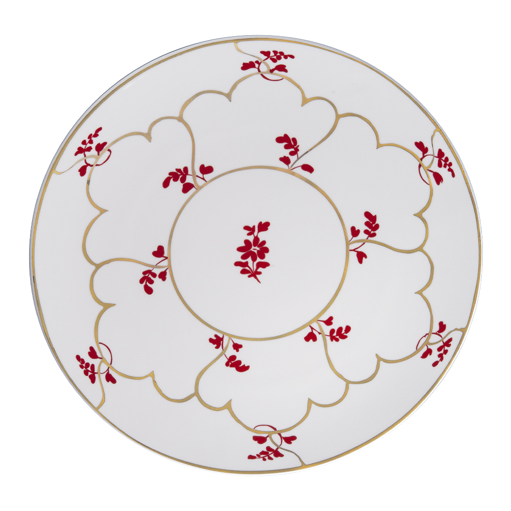 Il segnaposto Feston e Cadena Rosso (33 cm) rappresenta l'inizio di ogni mise en place importante. Realizzato in bone china, sfoggia il decoro ad anello oro zecchino e rosso, modulato come una catena di incontri e storie. Pensato per sostenere la sovrapposizione dei piatti, dona struttura, luce e carattere a ogni tavola formale. È un omaggio all'arte veneziana, firmato Geminiano Cozzi 1765, dove ogni gesto diventa esperienza di ospitalità e raffinata armonia.