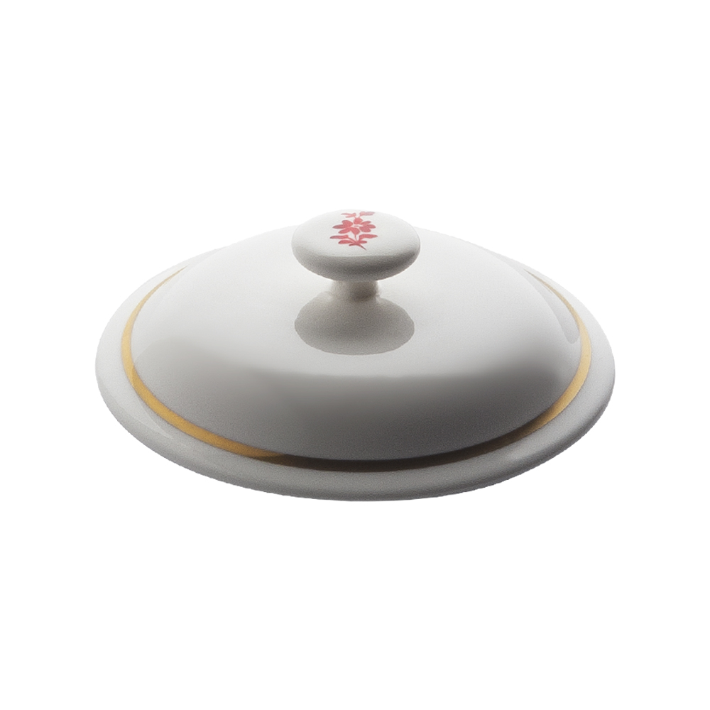Un piccolo accessorio che racchiude grande eleganza: il coperchio per tazza caffè (diam. 8 cm) Feston e Cadena Rosso è realizzato in bone china e decorato con i tocchi rossi e dorati della collezione. Protegge la bevanda e ne valorizza la presentazione, richiamando l'arte floreale del glicine. Il design raffinato di Geminiano Cozzi 1765 eleva la ritualità del caffè, offrendo stile e funzionalità insieme, per una pausa impeccabile in ogni dettaglio.