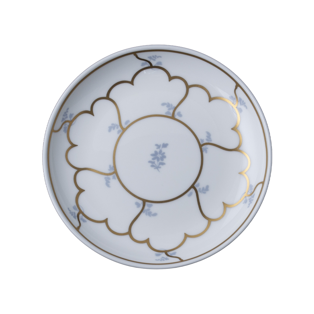 Il piattino pane & burro della collezione Feston e Cadena Azzurro esalta la bellezza della tavola grazie alla sua raganela dorata e azzurra, con dettagli ornamentali luminosi e raffinati, insieme alle delicate foglie di glicine blu, che incarnano serenità e longevità. Realizzato in esclusiva bone china, questo piattino rappresenta il perfetto equilibrio tra arte veneziana, luminosità materica e ricercatezza d'uso. Firmato Geminiano Cozzi 1765, dona un tocco di stile autentico a ogni occasione conviviale.