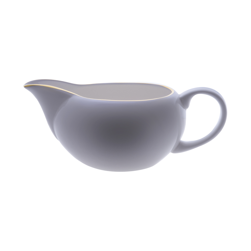 La salsiera da 350 cc della collezione Feston e Cadena Azzurro si distingue per la sua eleganza essenziale. Il corpo in purissima bone china, completamente bianco, è impreziosito da una sottile linea in oro zecchino che rifinisce il bordo superiore e il manico, arricchito inoltre da una delicata pennellata azzurra dipinta a mano. L'assenza di ulteriori decori esalta la perfezione della forma e la qualità materica. Firmata Geminiano Cozzi 1765, è l'accessorio ideale per servire salse e condimenti con uno stile sobrio e nobile, ispirato alla più autentica tradizione veneziana.