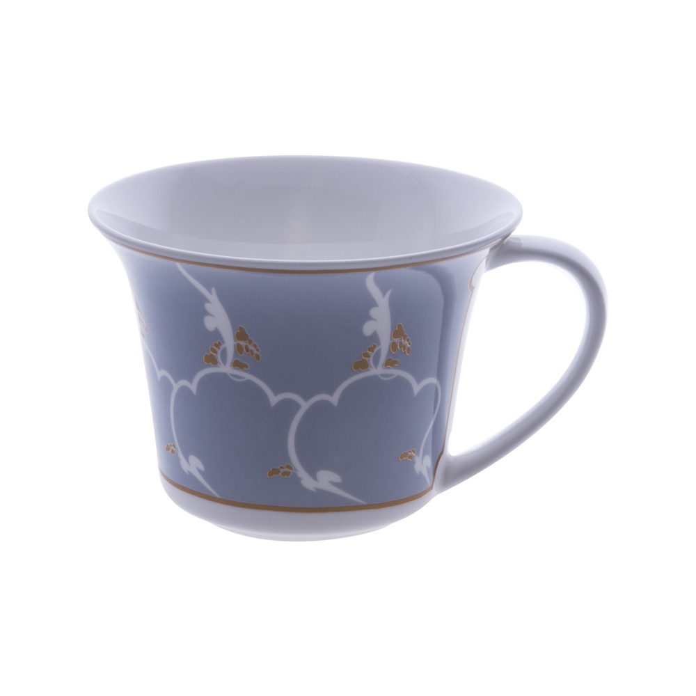 La tazza tè e cappuccino da 250 cc della collezione Feston e Cadena Azzurro è realizzata in raffinata bone china e decorata con un motivo di grande eleganza. Le maglie lobate bianche risaltano sul fondo azzurro, mentre le foglie in oro zecchino donano luce e preziosità all'insieme. Il bordo superiore è rifinito da una sottile linea dorata che completa il design con sobrietà. La forma armoniosa e la brillantezza della porcellana rendono ogni pausa un'esperienza raffinata di autentico stile veneziano, firmata Geminiano Cozzi 1765.