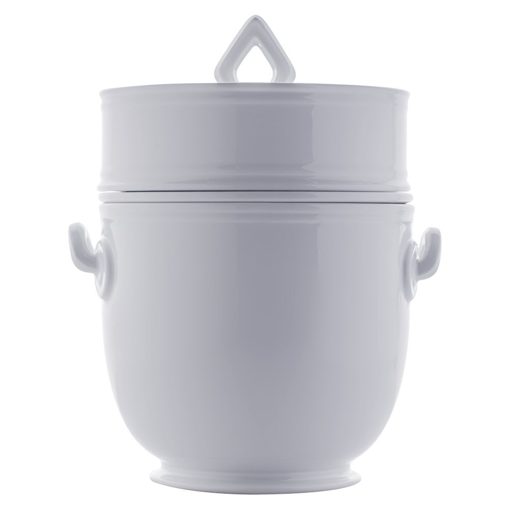 Sintesi di eleganza senza tempo e funzionalità storica, questa riedizione fedele dell'originale ?vaso da giacio con anima? del 1770 è realizzata in porcellana bianca lucente e dotata dell'inserto interno per ghiaccio. La silhouette ampia con manici proporzionati richiama i fasti delle tavole patrizie veneziane. Oggi è protagonista nelle suite d'hotel di lusso, scelto come ghiacciaia professionale, centrotavola minimalista o contenitore per eleganti composizioni. Ogni dettaglio, dall'armonia delle linee alla cura artigianale, riflette l'anima di Venezia e il valore esclusivo della vera ospitalità italiana.