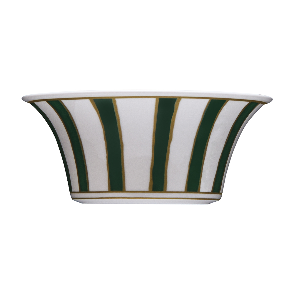 L'insalatiera 24cm Striche Verdi e Oro accoglie la tua creatività in una ciotola da vera maison veneziana: in pura bone china bianca, il suo decoro alterna fasce verdi verticali e linee dorate a raggiera. Un dettaglio ritmico e prezioso che, oltre a valorizzare insalate e preparazioni creative, rende questo oggetto protagonista della tavola, tra richiami storici e freschezza contemporanea.