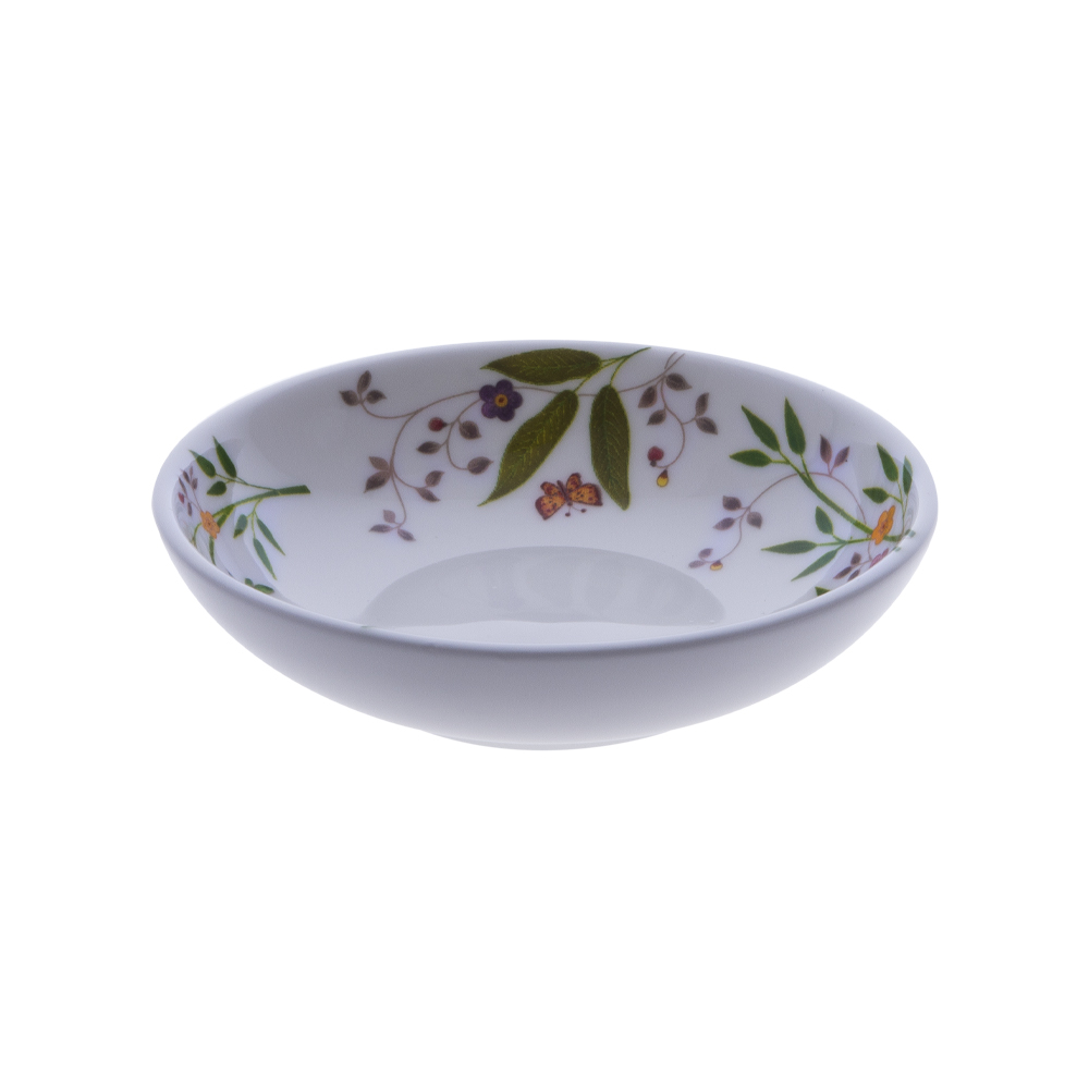 Il piattino limone da 10 cm della collezione Incanto di Primavera è realizzato in raffinata bone china e decorato con un piccolo motivo floreale, vivacizzato da sottili rami, foglie e delicate farfalle. Perfetto per servire spicchi di limone, piccole guarnizioni, salse o stuzzichini, aggiunge freschezza e un tocco di natura alla mise en place, richiamando la gioia delle prime giornate primaverili.