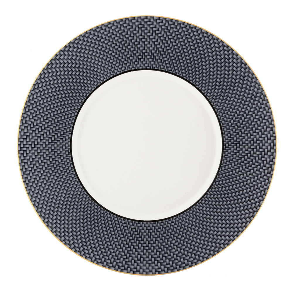 Il segnaposto da 33 cm (ala 7 cm) della collezione Intrecci, in variante nera, è realizzato in pregiata bone china bianca, impreziosita da una scenografica trama di fili intrecciati neri che richiamano i tessuti della tradizione. L'ampia ala da 7 cm valorizza il decoro e offre una base importante e raffinata per la mise en place, trasformando la tavola in un palcoscenico di arte artigiana.