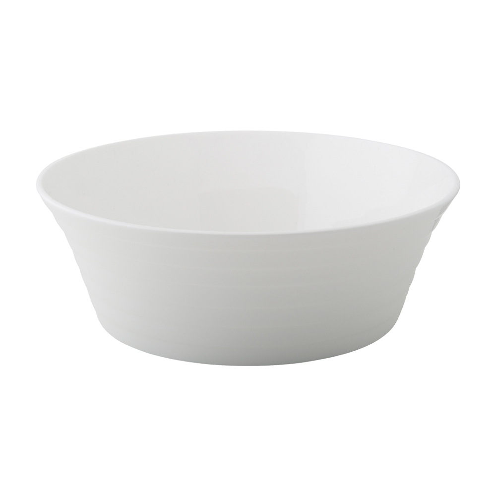 Grande protagonista della tavola, l'insalatiera da 23cm della collezione Torino In bone china esalta anche le preparazioni più abbondanti grazie a un design elegante e ben proporzionato. Il decoro a rilievo dona profondità materica e richiama la luminosità dell'avorio, mentre i bordi rinforzati ne fanno un oggetto destinato a durare. Perfetta per portare in tavola insalate ricche, paste fredde o frutta, rappresenta la sintesi ideale di solidità, poesia contemporanea e arte della tavola firmata Geminiano Cozzi Venezia 1765.