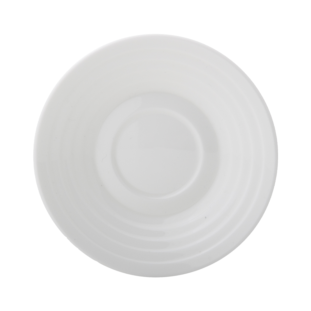 Il piattino da 14,5cm, perfetto per la tazza da tè e cappuccino Torino, è realizzato in pregiata bone china, esaltando le qualità di resistenza e lucentezza. Il caratteristico motivo art déco in rilievo riveste la superficie e dialoga con la forma armoniosa; il bordo rinforzato assicura massima longevità, permettendo un uso intenso senza timore di sbeccature.