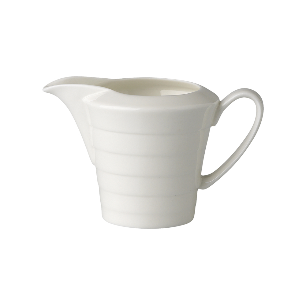Piccola nelle dimensioni ma grande per stile e robustezza, la lattiera da 80cc Torino completa il servizio con discrezione e personalità. Realizzata in raffinata bone china e lavorata a rilievo secondo i dettami art déco, vanta una lucentezza calda e bordi rinforzati per la massima protezione da urti e sbeccature. Pratica per il servizio individuale di latte o panna, ma anche ideale come accessorio elegante per ogni mise-en-place contemporanea.