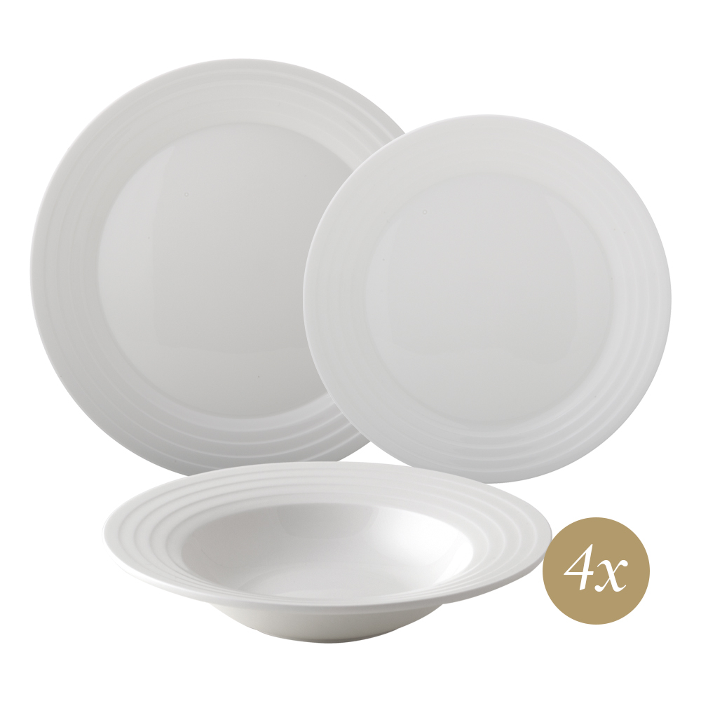 Completa la tua tavola con il set 12 pezzi Torino (piatti piani, fondi e dessert), pensato per chi esige qualità e stile in ogni occasione. Creato in pregiata bone china con decoro art déco a rilievo, offre impeccabile traslucenza e una nota calda avorio capace di valorizzare ogni ambiente. Grazie ai bordi rinforzati, ogni elemento del set è resistente, pratico e studiato per accompagnare l'uso quotidiano o le occasioni speciali, rivivendo ad ogni portata l'incanto e la tenacia della città di Torino.