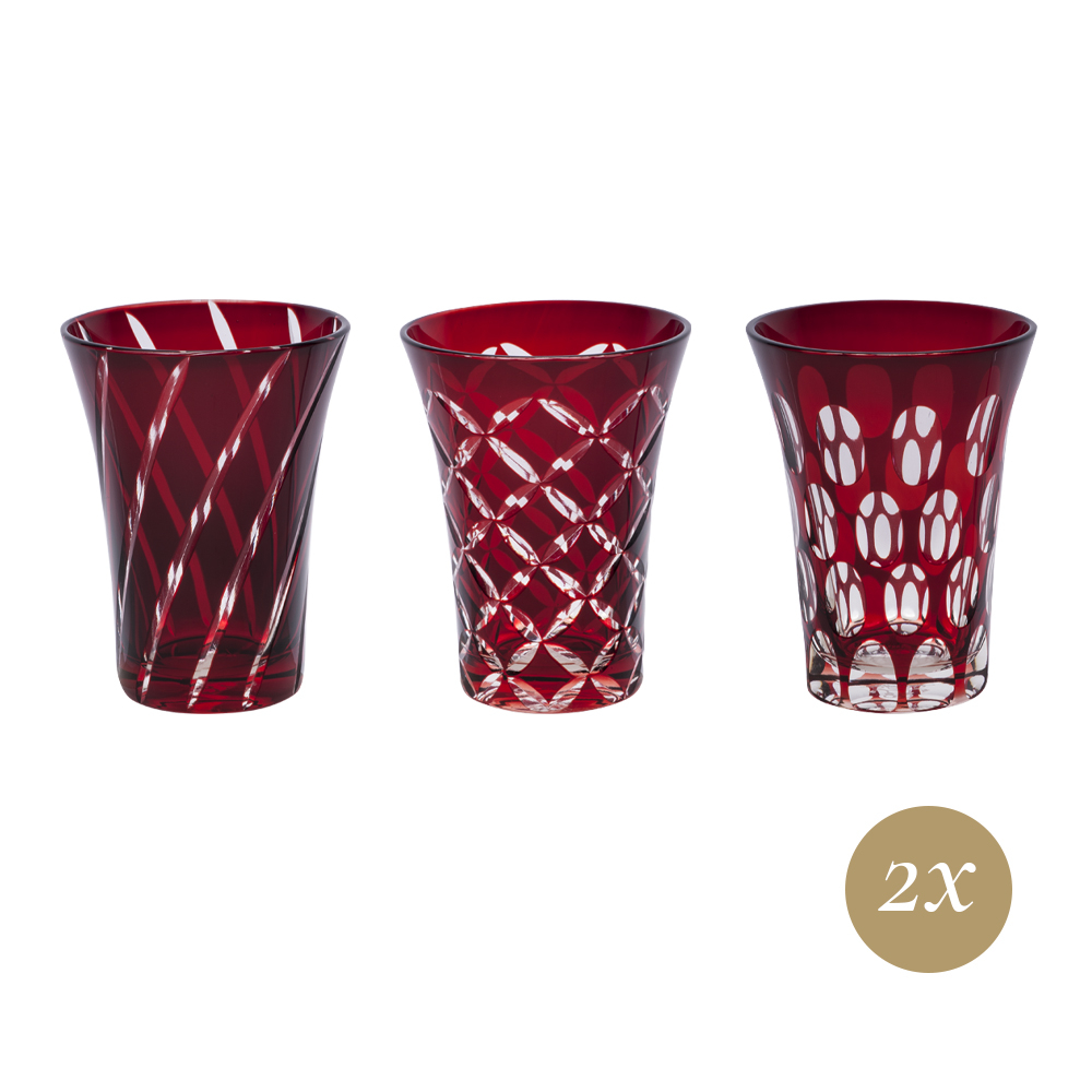 Nel set 6 bicchieri rosso Twins, il vetro rosso fuoco regala energia e originalità anche ai momenti più informali. Ogni bicchiere brilla per colore e stabilità, offrendo una presenza scenica unica sul tavolo; perfetti per l'uso quotidiano o in occasione di party esclusivi. Un'espressione brillante dell'anima creativa firmata Geminiano Cozzi.