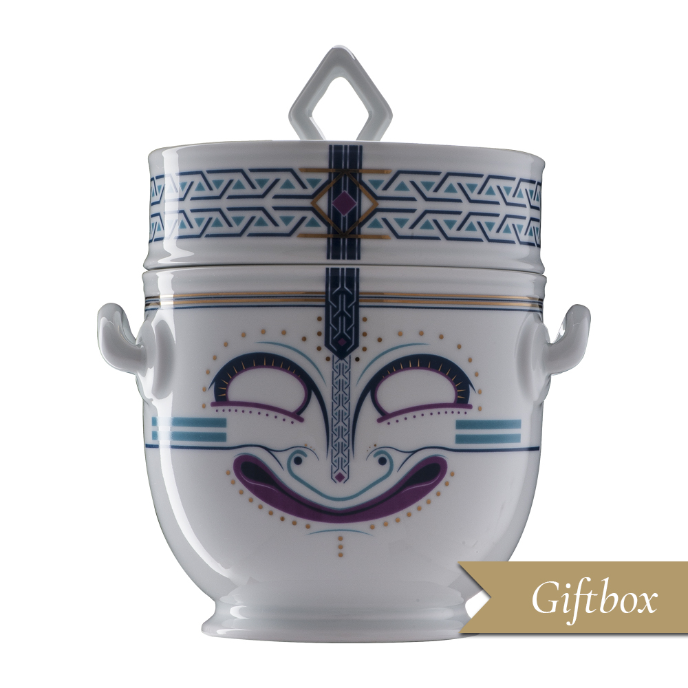 Il rinfrescatoio 2 pezzi Quart-Hadast della collezione Ethnics Geminiano Cozzi 1765 è una vera rarità per appassionati di design e collezionismo. Realizzato in pregiata fine porcelain, è impreziosito da decori che reinterpretano antichi simboli del Mediterraneo e del Vicino Oriente, portando in tavola mistero, spiritualità e raffinatezza. Prodotto in edizione limitata e numerata e presentato in un'elegante giftbox, questo rinfrescatoio dona all'ospitalità un tocco di esclusività cosmopolita e attenzione artigianale ai dettagli.