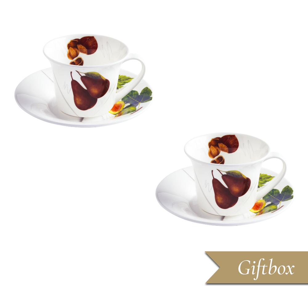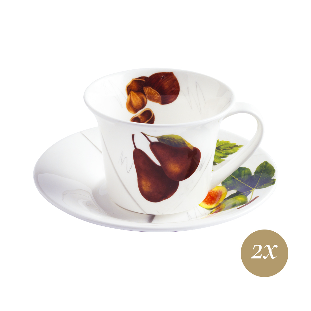 Quattro pezzi in bone china (due tazze tè/cappuccino con piattini), per chi vive la convivialità come uno spettacolo visivo sempre nuovo. Sulle superfici sbocciano frutti colorati e piccoli appunti redazionali che si inseguono tra i toni pastello del decoro collage. Il set della collezione Vintage invita a gustare ogni sorso dentro una storia: l'invenzione grafica, la memoria del magazine, la freschezza di idee sempre nuove.