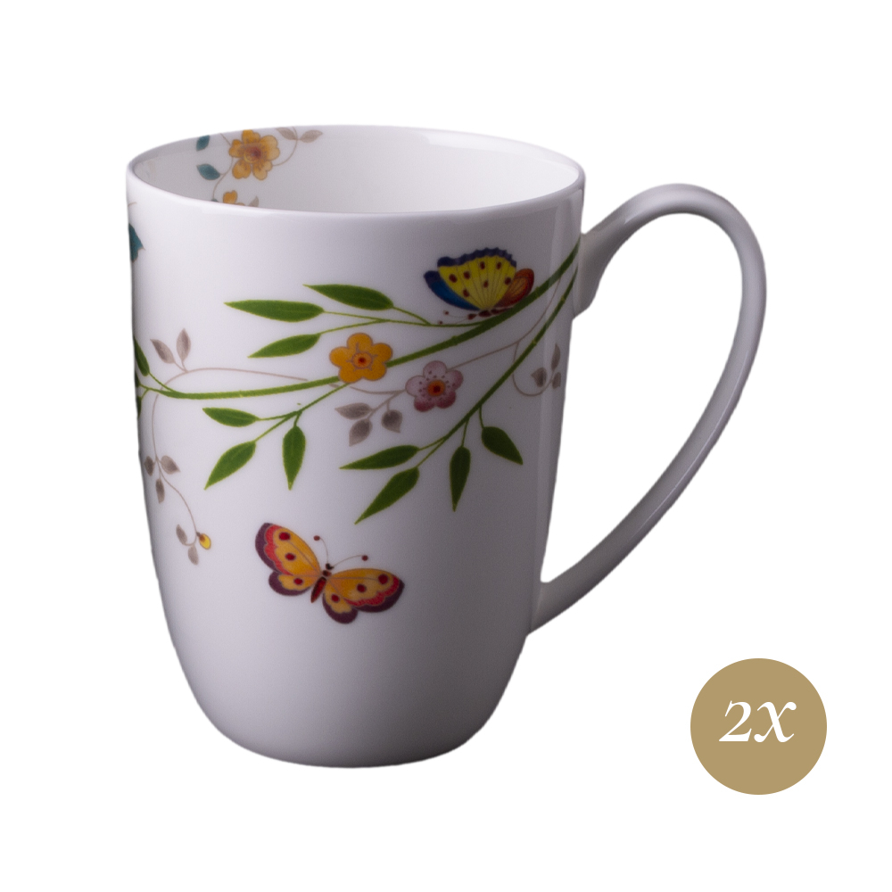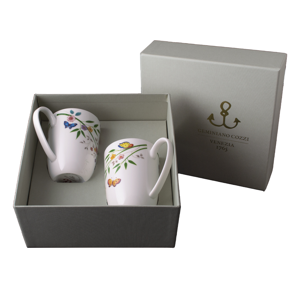 Questo set 2 mugs della collezione Incanto di Primavera, in giftbox GCV, è realizzato in brillante bone china decorata con ricco motivo floreale e farfalle. Le forme generose e le sfumature delicate rendono queste mugs perfette per colazioni, tisane o momenti rilassanti, racchiudendo in ogni sorso la magia e la freschezza della primavera.