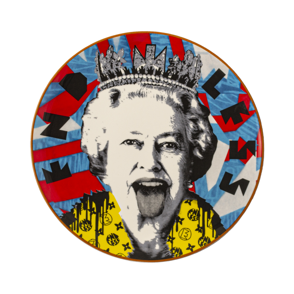 Il piatto dessert Endless Lizzy Vuitton da 22,5 cm porta sulla tavola l'esplosione cromatica e ironica del decoro firmato Endless, che reinterpreta la regina Elisabetta II in uno stile pop e contemporaneo. Realizzato in brillante fine porcelain, conquista per leggerezza, resistenza e vivacità delle grafiche, ispirate al lusso street-art della serie Lizzy Vuitton. Ideale per servire dolci, aggiunge alla mise en place personalità e unicità, esprimendo tutto il carattere di Geminiano Cozzi 1765.
