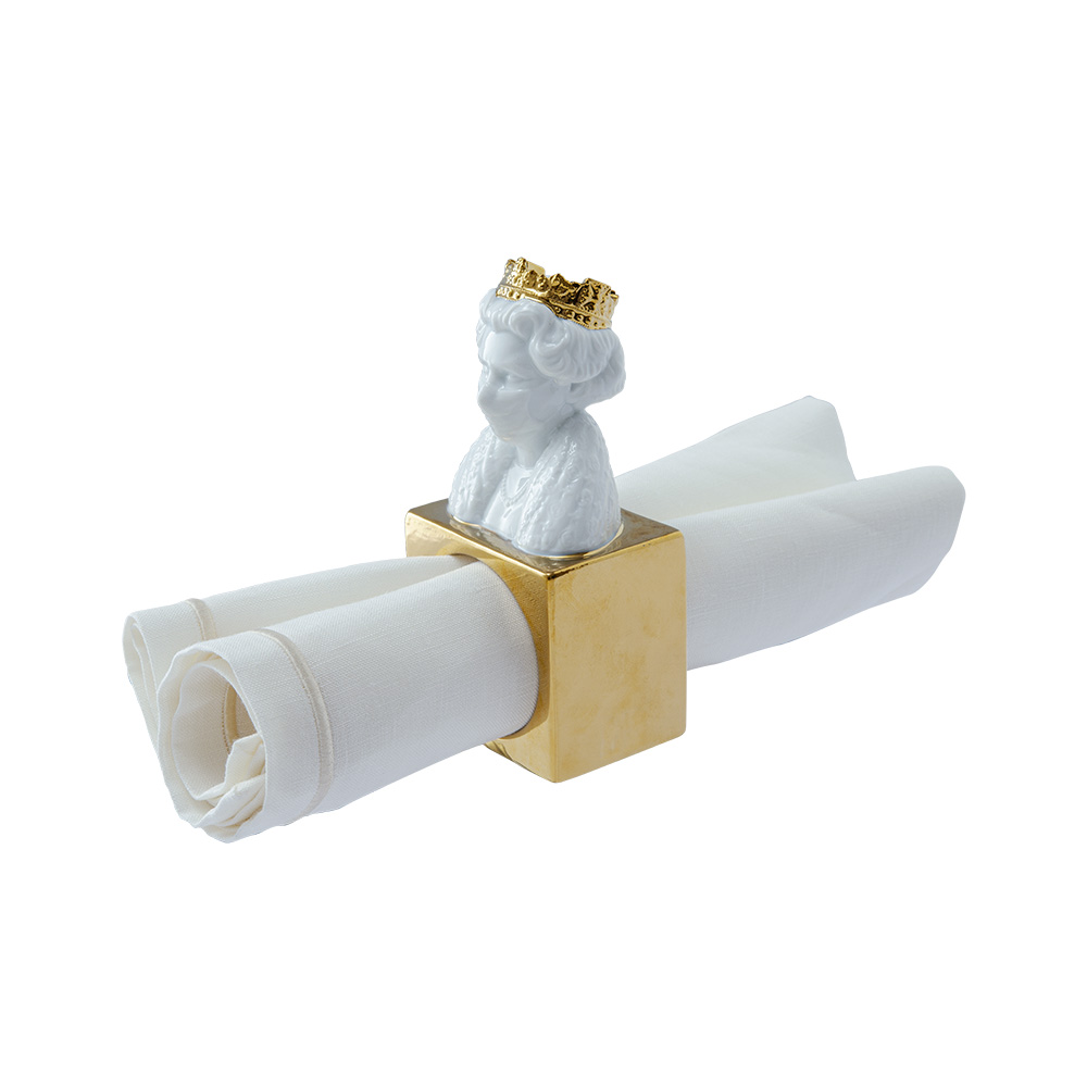Il portatovagliolo Endless della collezione Geminiano Cozzi 1765 si distingue per il suo design ispirato all'iconica figura della Regina Elisabetta II, reinterpretata dall'artista londinese Endless nella serie ?A tavola con la Regina?. Il motivo decorativo rende omaggio alla celebre ?Lizzy Vuitton?, una sintesi tra potere, moda e cultura pop britannica che si riflette nella scelta cromatica vivace e nell'effetto graffiante dei dettagli. Realizzato in Porcelain di alta qualità, questo accessorio trasporta sulla tavola contemporanea la regalità moderna della regina, tra energia artistica, ironia e stile inconfondibile, per una mise en place che celebra l'incontro tra tradizione veneziana e provocazione creativa.