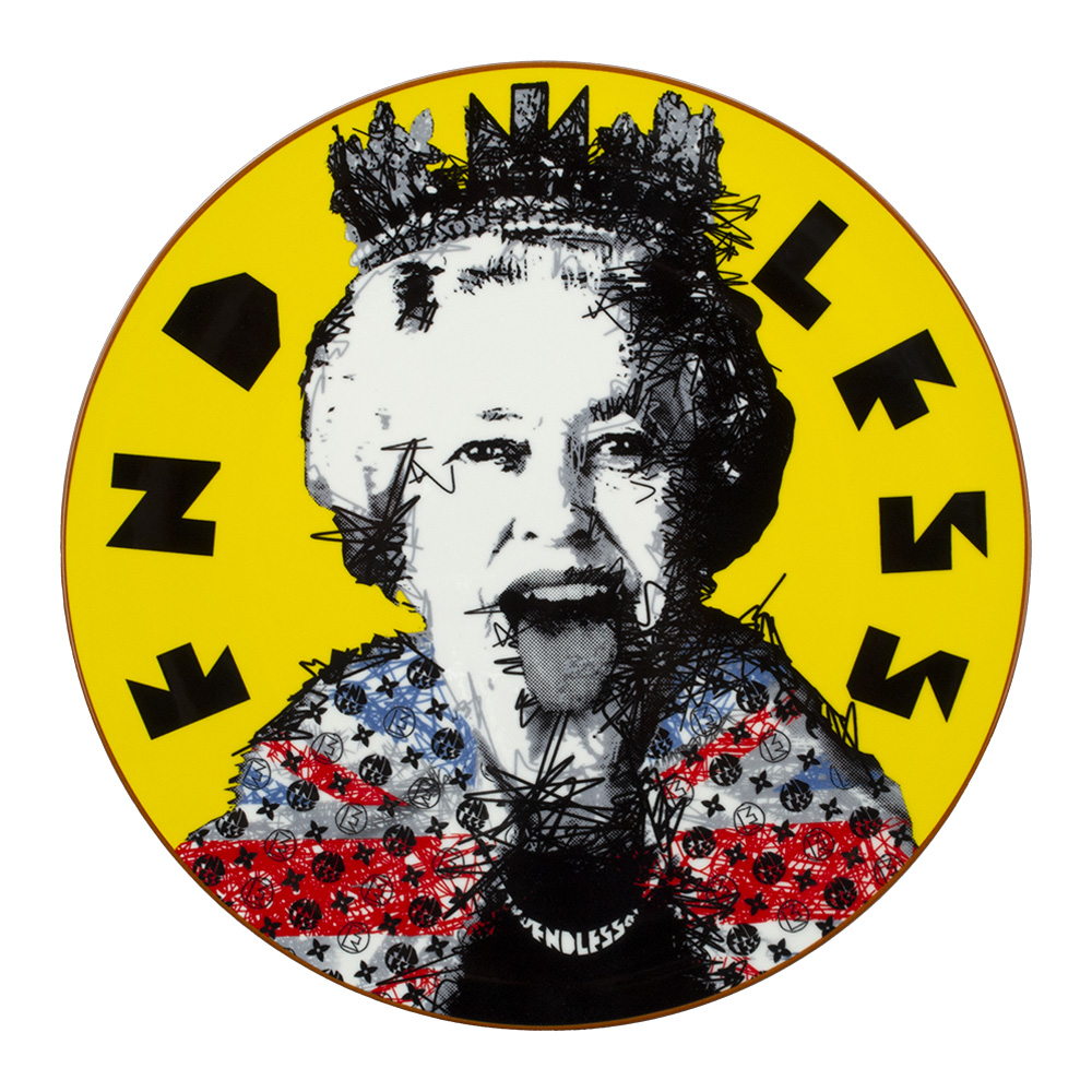 Il segnaposto Endless da 30 cm è la base ideale per una mise en place moderna dalla forte personalità. Realizzato in luminosa fine porcelain, si distingue per l'ampiezza della superficie e il design essenziale, evidenziato dai decori iconici dell'artista Endless che reinterpretano la figura della regina Elisabetta II in stile pop. Perfetto per sostenere piatti di ogni dimensione, dona coerenza e carattere sia nelle occasioni formali che nei momenti quotidiani, firmando la tavola con lo stile internazionale della collezione Endless.