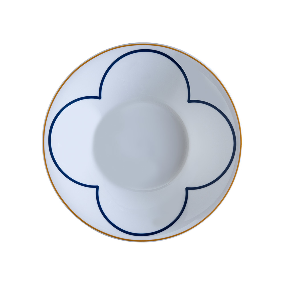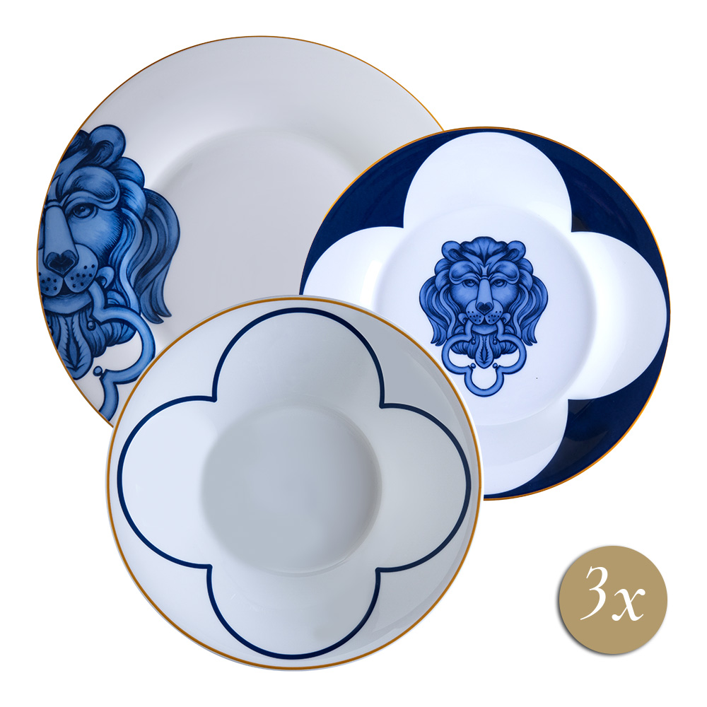 Il set tavola El Leon comprende piatto piano, fondo e dessert, tutti in bone china con decoro blu esclusivo. Racchiuso in una elegante giftbox, questo servizio combina praticità quotidiana e arte veneziana. Il leone alato e il quadrilobo celebrano la potenza della Serenissima, mentre la manifattura Geminiano Cozzi 1765 e Jesurum 1870 garantisce qualità senza compromessi. Perfetto come dono prezioso o per elevare la tavola di ogni giorno, racconta storie di cultura, raffinatezza e ospitalità.
