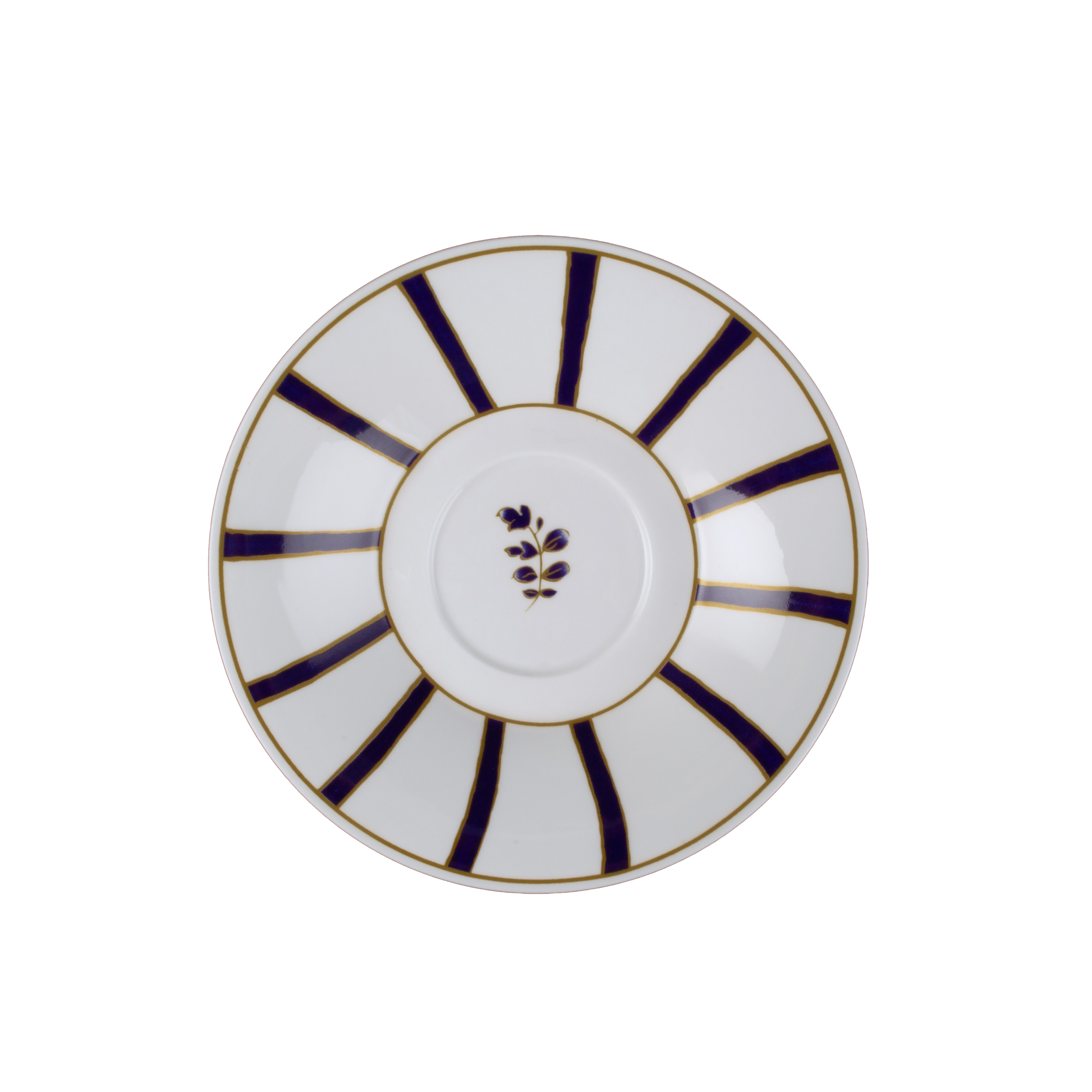 Il piattino da 16cm Striche Blu e Oro trasforma ogni pausa in un piccolo rito di eleganza. In pregiata bone china, il decoro si sviluppa a raggiera: fasce blu cobalto si alternano a spazi bianchi, ciascuna sottolineata da sottili filetti dorati applicati con maestria artigianale. Al centro, un raffinato dettaglio floreale blu firma la composizione con discrezione e poesia. Perfetto per accogliere la tazza da tè o cappuccino della stessa serie, completa il servizio con armonia storica e spirito contemporaneo, simbolo della creatività decorativa della tradizione Cozzi.