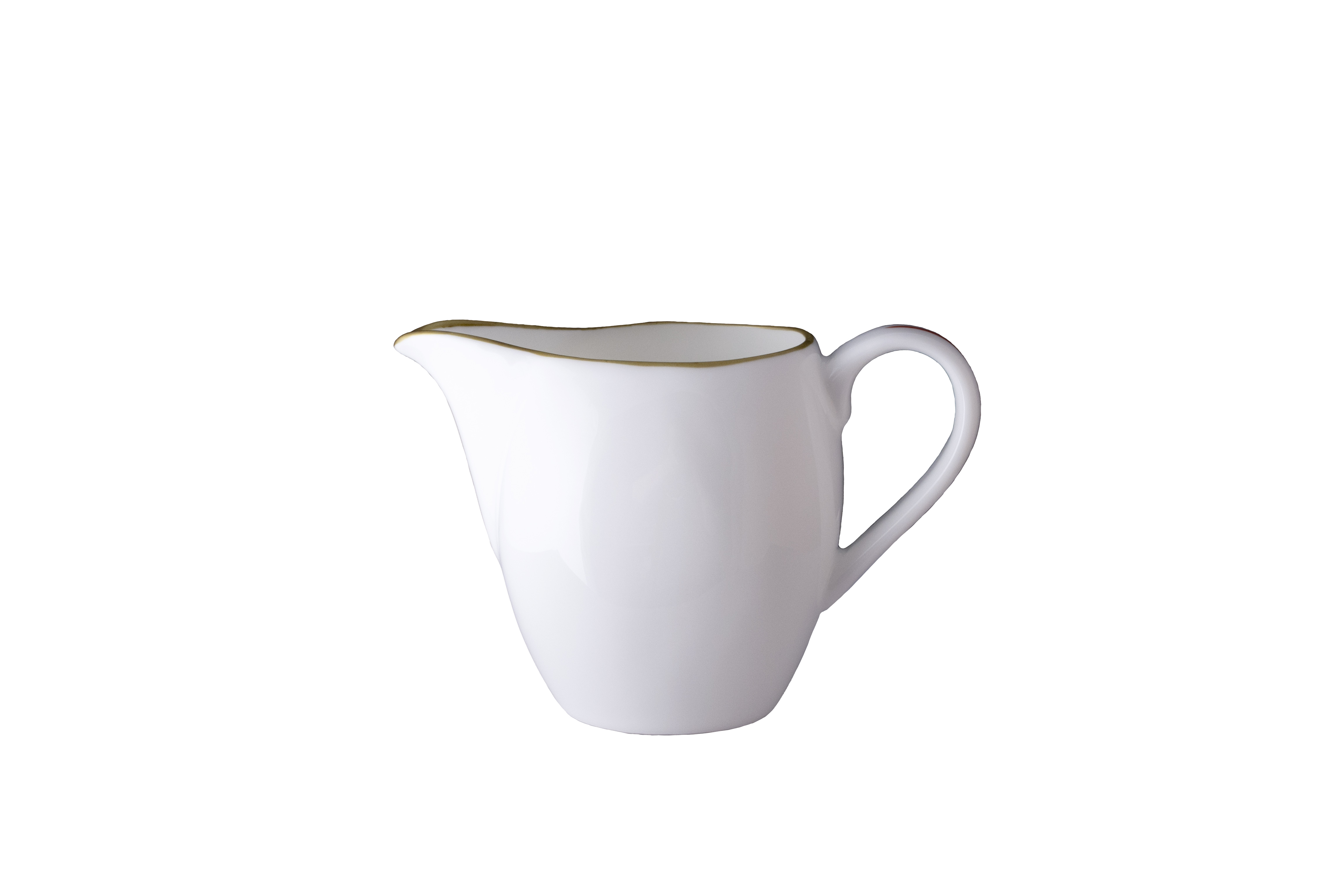La lattiera Striche Blu e Oro da 150cc interpreta la raffinatezza nella sua forma più pura. In splendente bone china bianca, è decorata esclusivamente con una delicata linea dorata lungo il bordo del coperchio, mentre un piccolo dettaglio blu impreziosisce il pomello e la parte superiore del manico. È la scelta ideale per chi desidera un servizio elegante e luminoso, in perfetto equilibrio tra tradizione veneziana e minimalismo contemporaneo, e si abbina perfettamente sia alle tavole più ornate sia alle mise en place più sobrie.