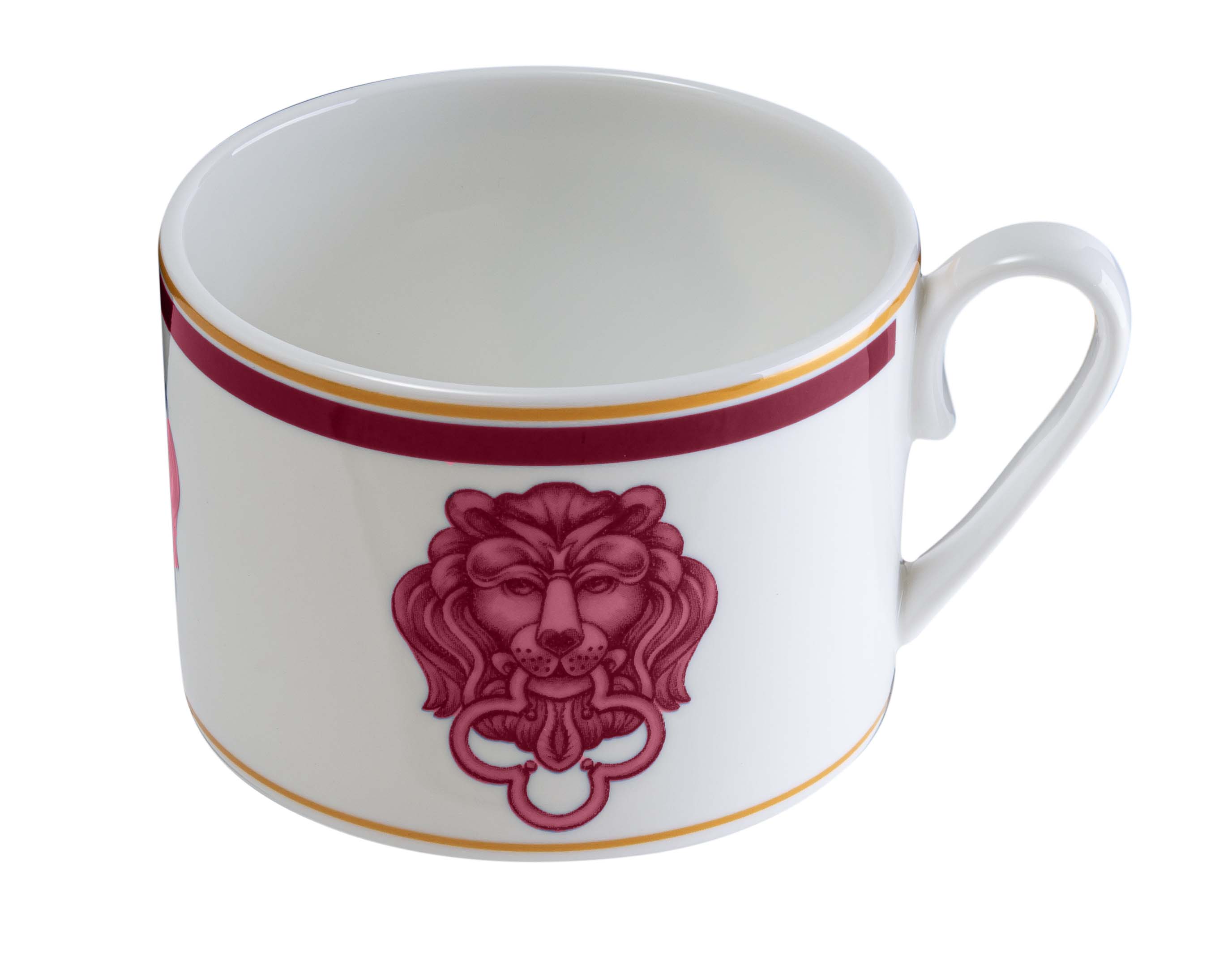 La tazza tè El Leon Porpora da 250 cc in bone china si distingue per la decorazione a dominante porpora, simbolo di energia e lusso. Il leone veneziano e il quadrilobo, protagonisti del design, richiamano le radici storiche della Serenissima e l'inventiva artigianale di Geminiano Cozzi 1765 e Jesurum 1870. Capienza ideale e superfici brillanti accompagnano ogni momento di relax, offrendo una degustazione ricca di significato e fascino veneziano. Perfetta per chi desidera un protagonista di design sulla tavola.