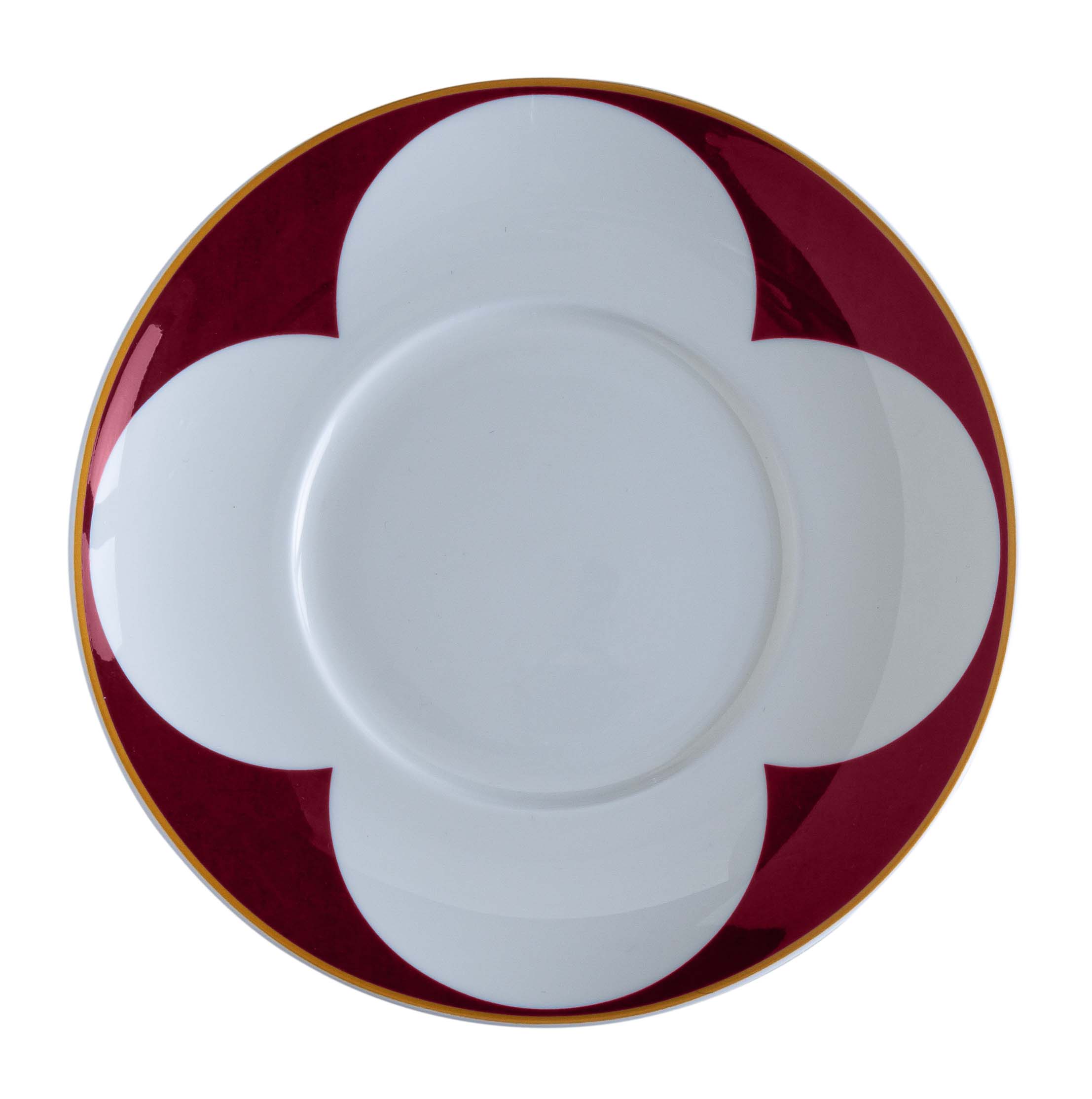 Il piattino da 16 cm El Leon Porpora, in pregiata bone china, riflette tutta la carica espressiva del colore porpora su una base elegante e minimale. Il decoro del quadrilobo firmato Geminiano Cozzi 1765 ? Jesurum 1870 lo rende unico. Progettato esclusivamente come supporto per la tazza tè o cappuccino, conferisce alla tavola un'impronta di stile veneziano e modernità. Un dettaglio che completa l'esperienza sensoriale della collezione con accuratezza e personalità.