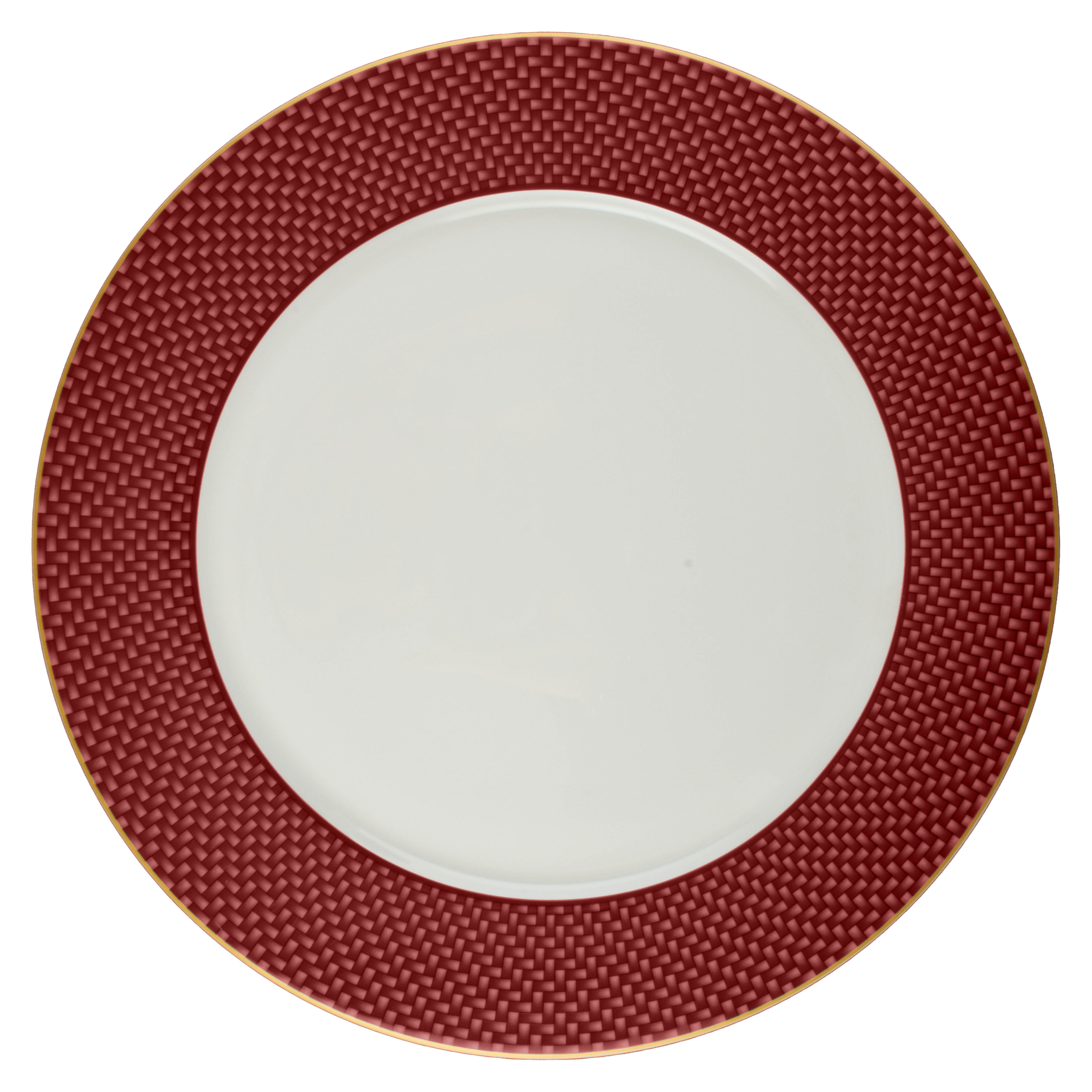 La versione con ala da 5 cm del segnaposto 33 cm Intrecci in rosso è più compatta ma mantiene intatta l'energia creativa della collezione. I fili rossi intrecciati disegnano sulla bone china bianca motivi brillanti e distintivi, perfetti per mise en place raffinate che esaltano la tradizione artigianale con equilibrio e misura.
