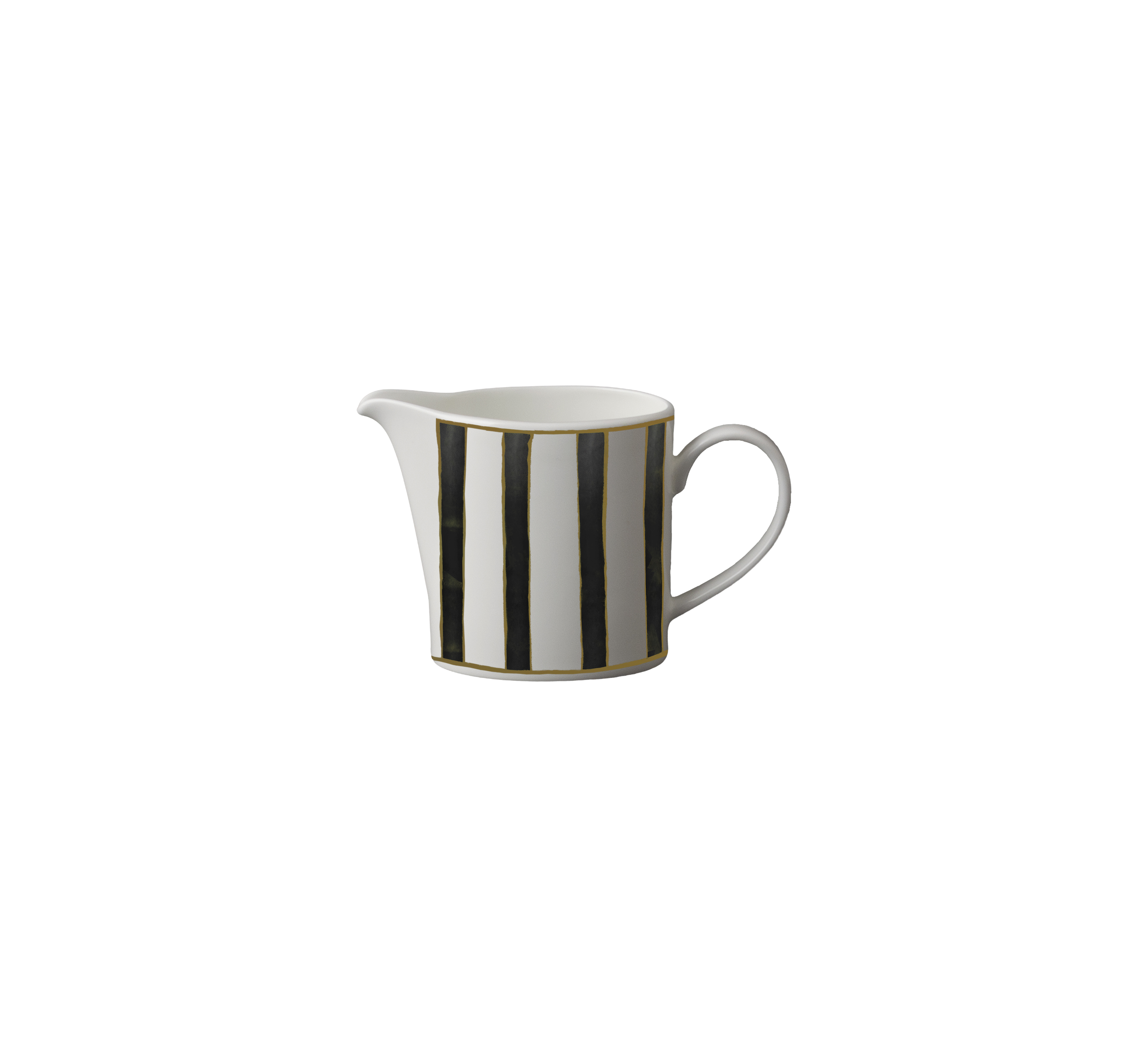 La lattiera Striche Nere e Oro da 150 cc è realizzata in purissima bone china e decorata dal motivo a striche nere, impreziosito da un elegante bordino dorato che rifinisce il bordo superiore. La combinazione tra il nero e l'oro luminoso conferisce alla silhouette armonia e raffinatezza, senza rinunciare alla funzionalità quotidiana. Un accessorio prezioso e versatile, perfetto per completare con stile il servizio da tè o caffè firmato Geminiano Cozzi 1765.
