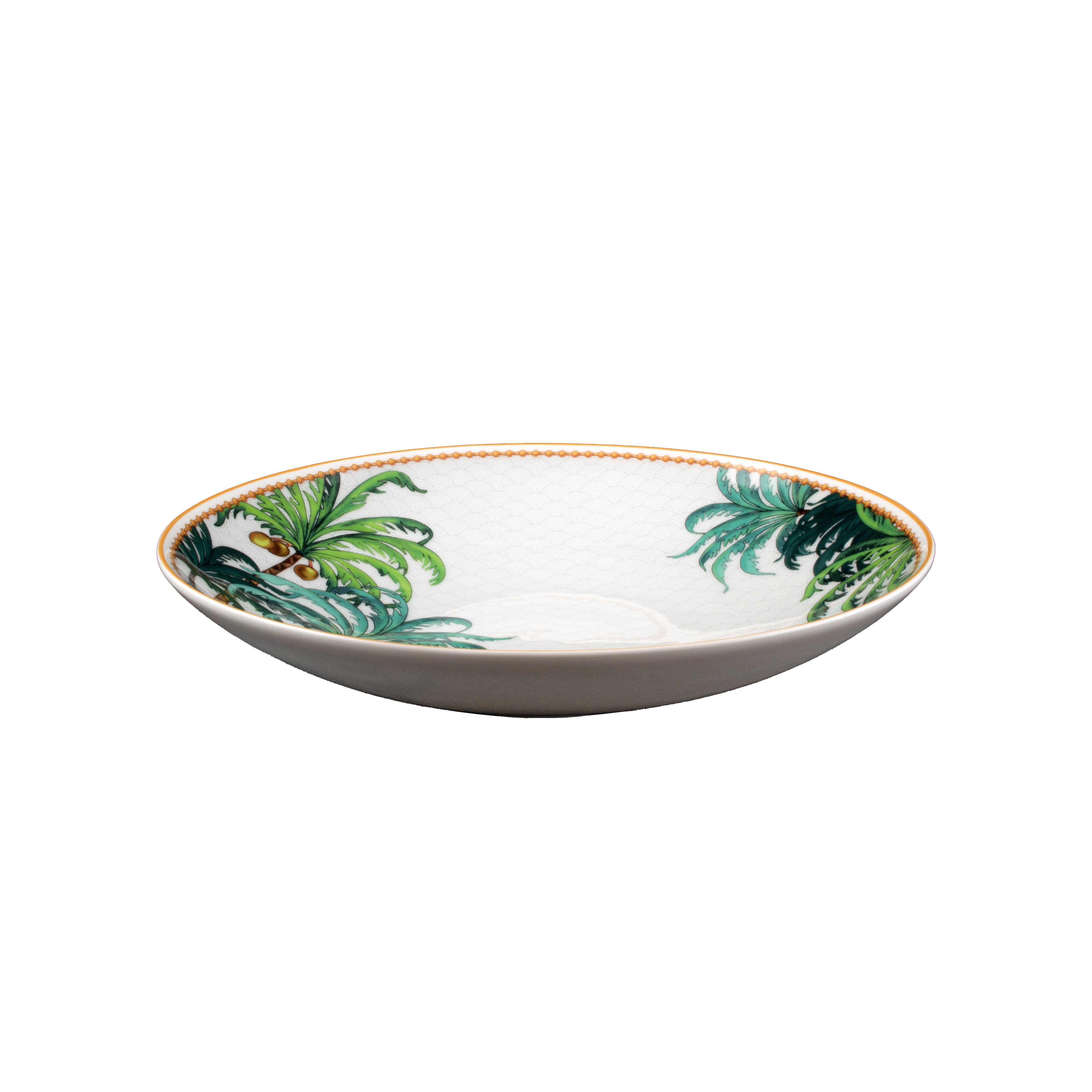 La pasta bowl da 25cm della collezione Teatro dei Sogni trasforma la tavola in uno scenario immaginifico ispirato all'arte veneziana. Realizzato in raffinata bone china, presenta un decoro elegante con palme esotiche e profili dorati, che incorniciano la superficie con grande leggerezza e brillantezza. Ideale per servire primi piatti, risotti o creazioni gourmet, esprime la perfetta sintesi tra artigianalità italiana e visione contemporanea firmata Geminiano Cozzi. Ogni dettaglio racconta un viaggio tra sogno e realtà, donando alla mise-en-place fascino, originalità e storia.