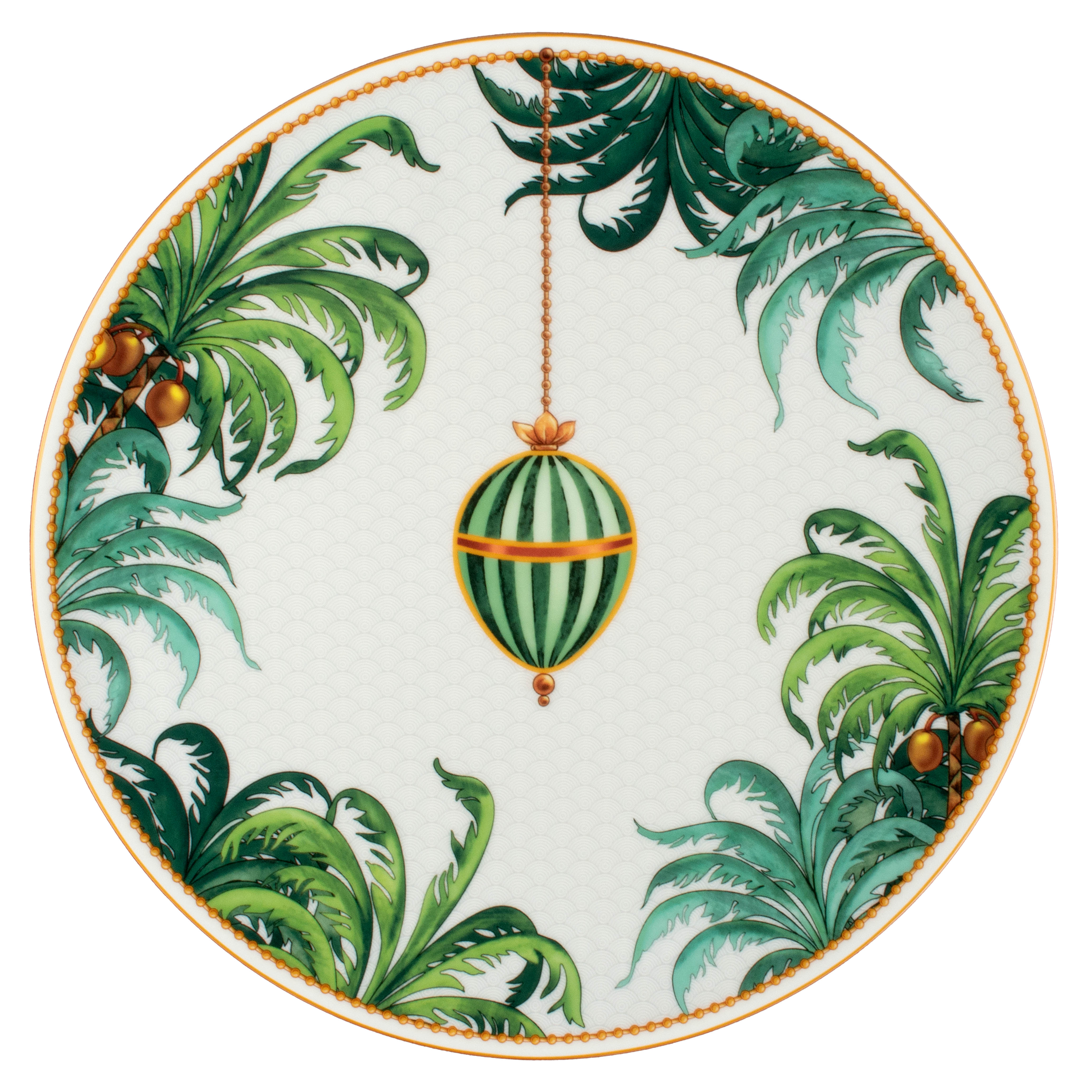 Il segnaposto bianco da 33cm della collezione Teatro dei Sogni porta in tavola una raffinata interpretazione della fantasia veneziana. Realizzato in pregiata bone china, è decorato con imponenti palme e il simbolico uovo ?Striche Verdi? che scende dal bordo, raccontando un'eleganza sospesa fra storia e immaginazione. La brillantezza del fondo bianco esalta colori e dettagli, rendendo ogni mise-en-place un'esperienza scenografica unica. Firmato Geminiano Cozzi, è la base ideale per accogliere piatti e creazioni d'autore, trasformando ogni evento in un rito di bellezza senza tempo.