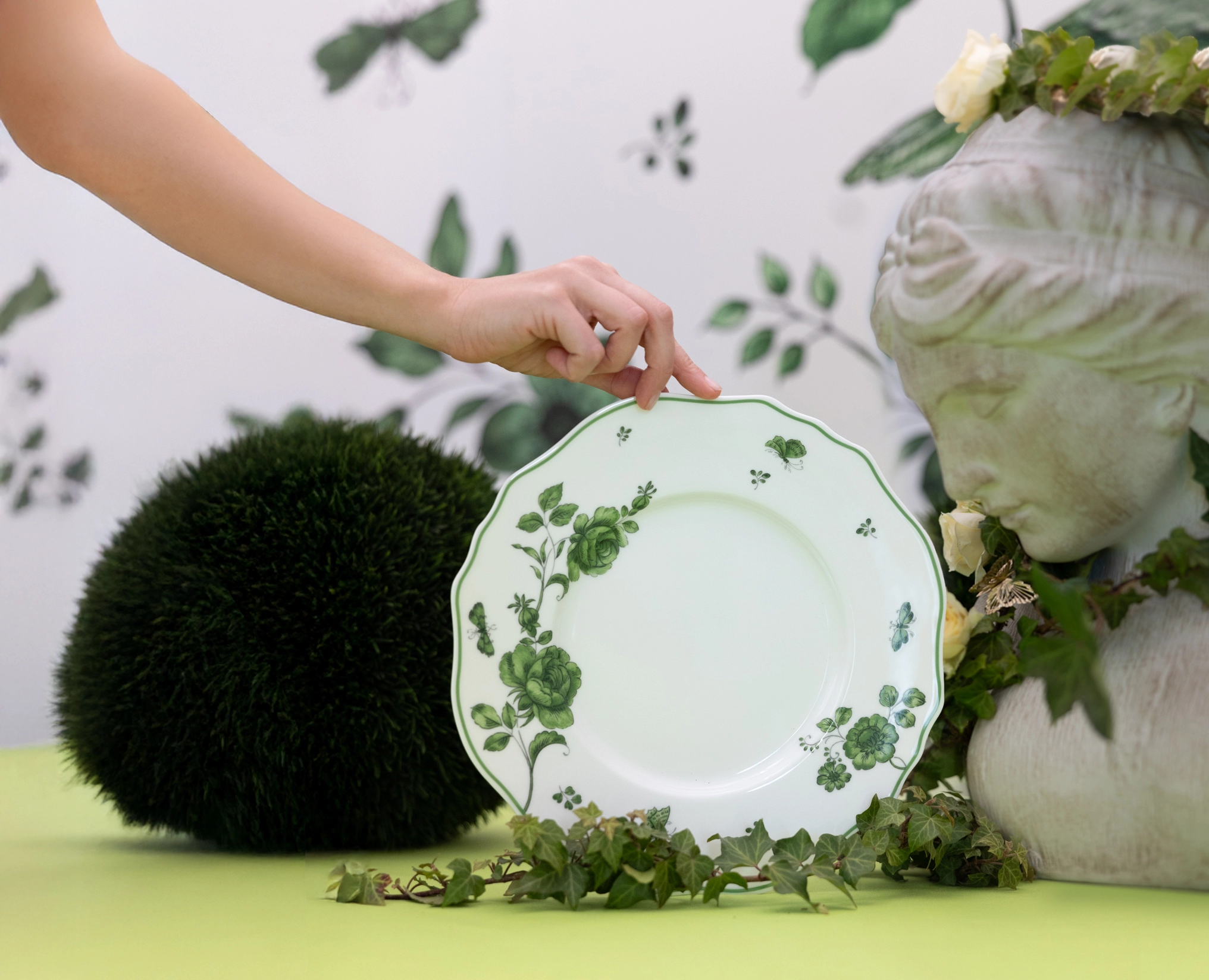 Le farfalle, vere narratrici in questo giardino, diventano ambasciatrici di un'esistenza che si evolve e prende nuova vita. Proprio come i decori, copia anastatica degli originali custoditi al Museo della Ceramica di Bassano del Grappa, che rivivono trovando espressione sulla forma Burano, una reinterpretazione moderna della sinuosa forma festonata settecentesca. Rosa Rosae trasforma così la tavola in una galleria d'arte dalla qualità scultorea, un luogo dove vivere e connettersi in una nuova dimensione estetica.