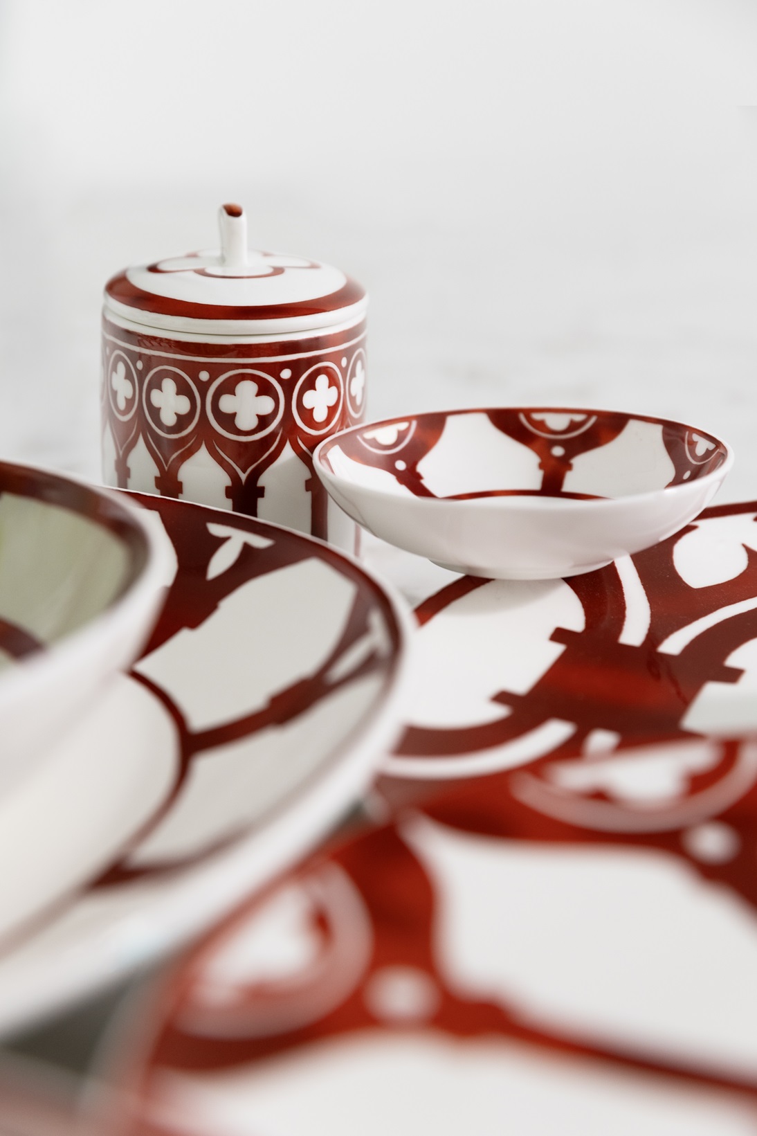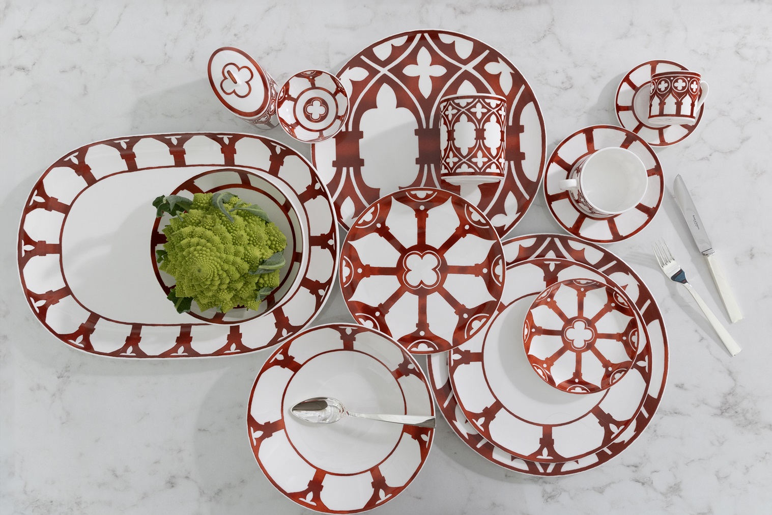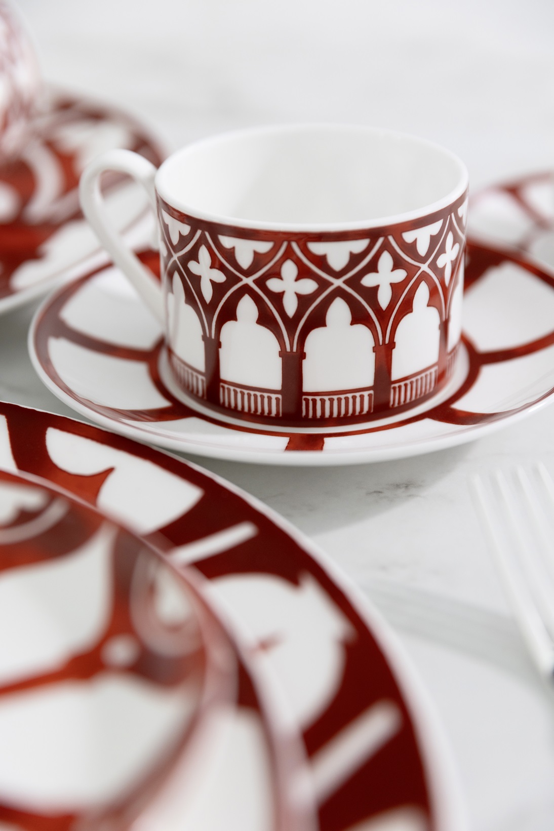 L’architettura gotica dei prestigiosi palazzi veneziani, con influenze bizantine e orientaleggianti, è una meraviglia unica al mondo: la Ca’ D’Oro e Palazzo Ducale sono capolavori e simboli della città di Venezia. Ecco che Geminiano Cozzi prende ispirazione dalle balconate e dai fregi delle facciate e dei loggiati e le riproduce su tazze, mugs, vassoi e svuotatasche, nel tipico colore rosso ferro di Venezia.